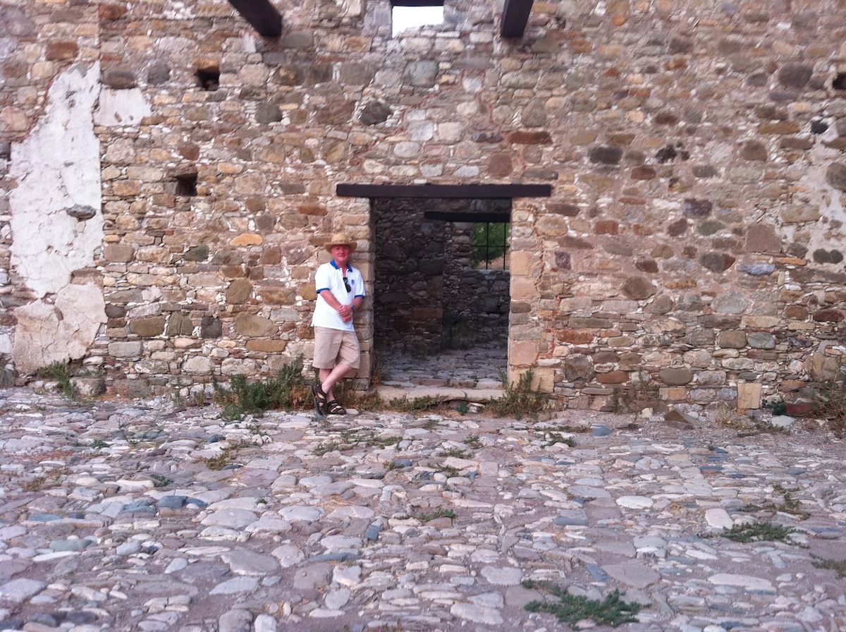 This photo captures the moment a medieval ruin briefly considered becoming a holiday cottage before immediately changing its mind. The stone walls whisper stories of sieges, monks, and mysterious drafts, while I, casually leaning against it, wonder, “Yes, but does it get Wi-Fi?” The contrast is striking: centuries of hardship versus sandals that have clearly never known true suffering. No, I don’t wear sandals like that anymore, and I’ve never worn socks with them!