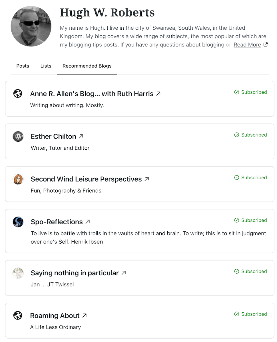 WordPress has introduced a new blog recommendation feature that displays recommended blogs on your Gravatar profile, improving visibility. My post details how to add the blogs you love the most.